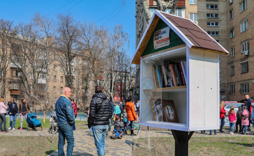 Так, в субботу, 6 апреля, на ул. Преображенской, 22/9, в Соломенском районе Киева был открыл новый сквер с мини-библиотекой, откуда каждый желающий может взять книгу для чтения.